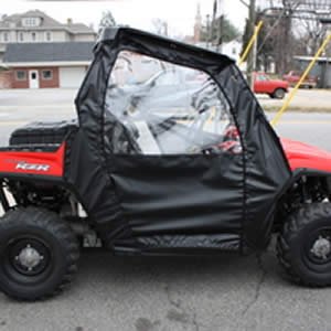 Greene Mountain PRZRSE-155 Soft Full Doors MOSSY OAK CAMO For 2008-11 Polaris RZR?Greene Mountain Soft Full Doors For 2008-11 Polaris RZR - Polaris RZR side enclosures feature 600 denier PVC backed Polyester shell with automotive grade clear flexible acrylic side windshield sewn in upper section of doors. Side enclosures work with our hard front and rear windshields, soft tops and hard tops. Doors are completely removable and have full length double pull zippers. Side enclosures comes complete with necessary self adhesive Velcro , installation and care instructions and are priced as a pair ( 1 driver, 1 passenger). Doors can be rolled up and fastened to the roll cage or totally removed for added ventilation on warmer days. Note: Items in black are made of 40 ounce Tonneau-Tex Vinyl. MADE IN USA!
