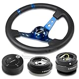| ✚✚✚ NRG-SRK-130H+200CF+101LB+016RBL, NRG Innovations 13.78" 350mm 3" Deep Dish Style Black Leather Blue Center Marking Blue Spokes Racing Steering Wheel Combo with 6 Hole Short Hub Adapter with Gen 2.0 Carbon Quick Release with Black Lock Hub Kit SRK-130H NRG Quick Release features many options that conventional ball-locking quick release system do not. It is specially engineered with raised sections to prevent the scratching and stretching of the hub while a self locking feature adds increased safety and functionality. Features racing styled for added style and look. Each unit is made from the highest quality aircraft grade aluminum and is anodized for maximum durability and finish.