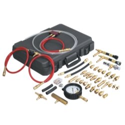 With this new kit you can diagnose fuel-related problems, such as a weak fuel pump or restricted fuel filter, and perform leak-down tests. Test fuel injection systems on most GMs, including GM TBI, Ford, Chrysler, and Jeep vehicles. Also works on imports, including CIS and CISE fuel systems